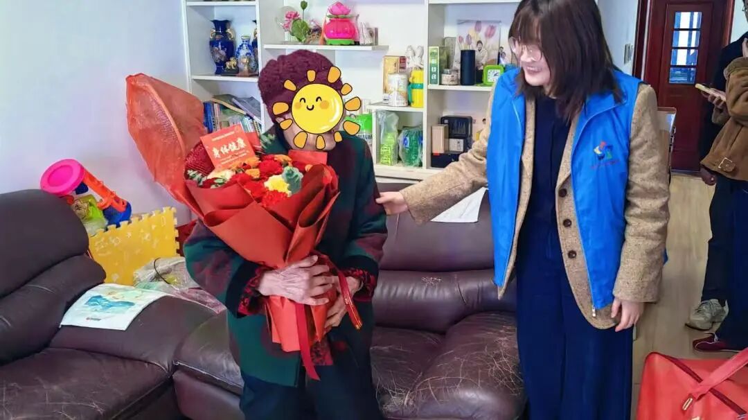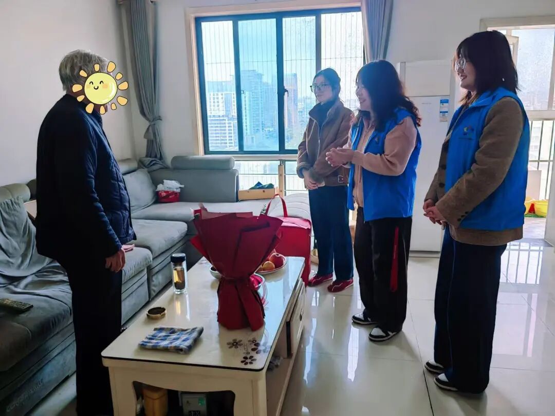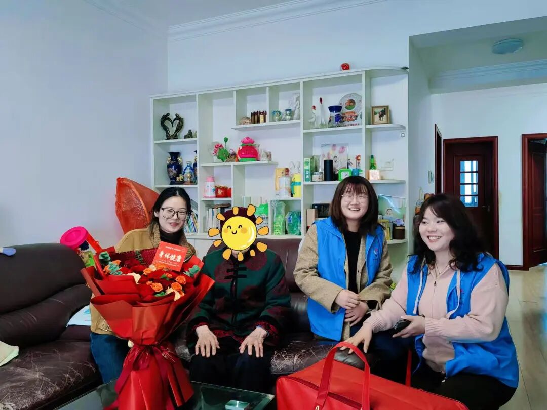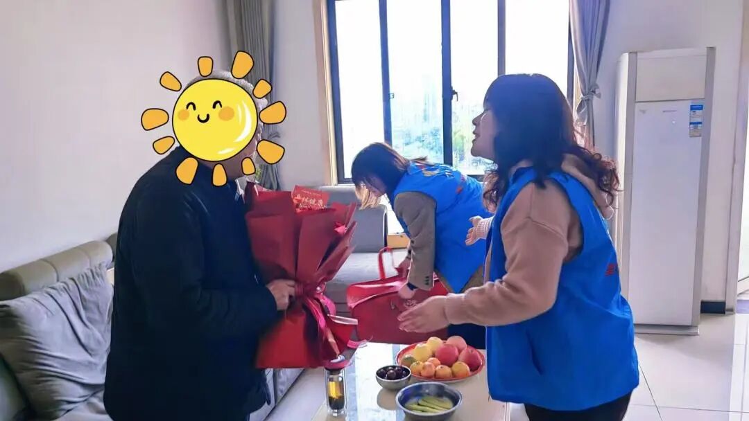 慰问当天,社工与社区志愿者组成的暖心队伍,带着精心准备的心愿礼物与慰问品上门探访。为百岁老人送上松软的棉被与应季的温馨花束,细心叮嘱秋冬保暖注意事项;给老党员递上放大镜、书籍等实用好物,围坐在一起听他们讲述当年的奋斗故事。一句句关切的问候、一次次贴心的叮嘱,让老人们脸上洋溢着幸福的笑容,小小的屋子里满是温馨的暖意。