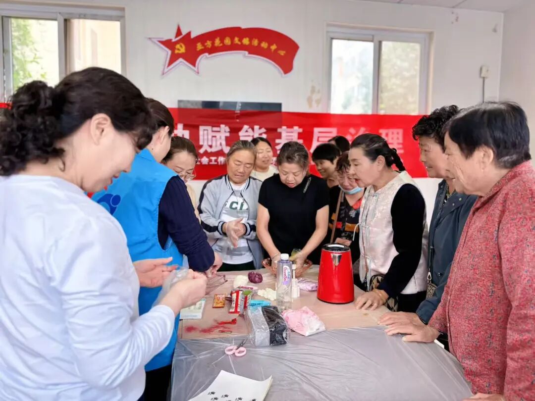 活动现场,冰皮月饼DIY区域里,居民们兴致勃勃地揉制冰皮、包裹馅料、按压模具,将对团圆的期盼揉进一个个精致的月饼中;艾草锤制作区更是香气四溢,大家挑选新鲜艾草,在社工的指导下捶打、捆扎,亲手制作出寓意驱邪避秽的艾草锤,让传统民俗在指尖焕发生机。